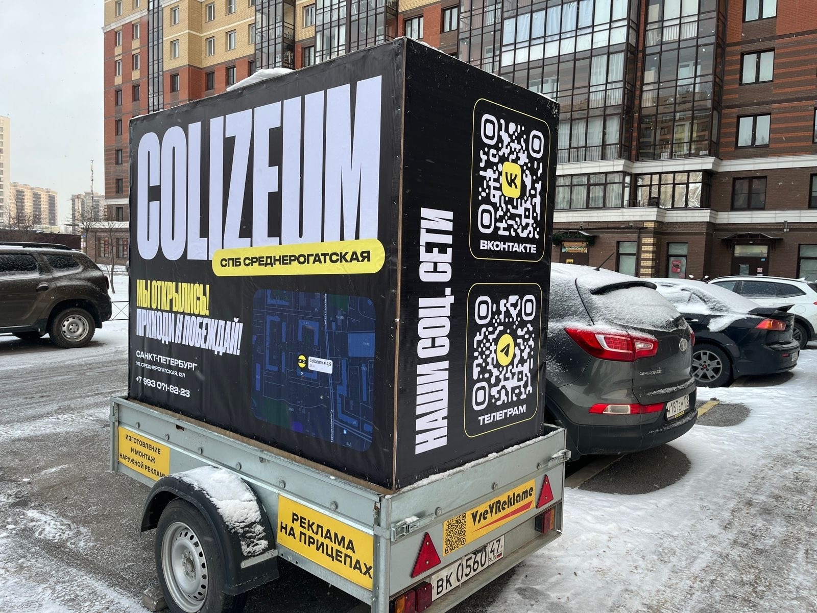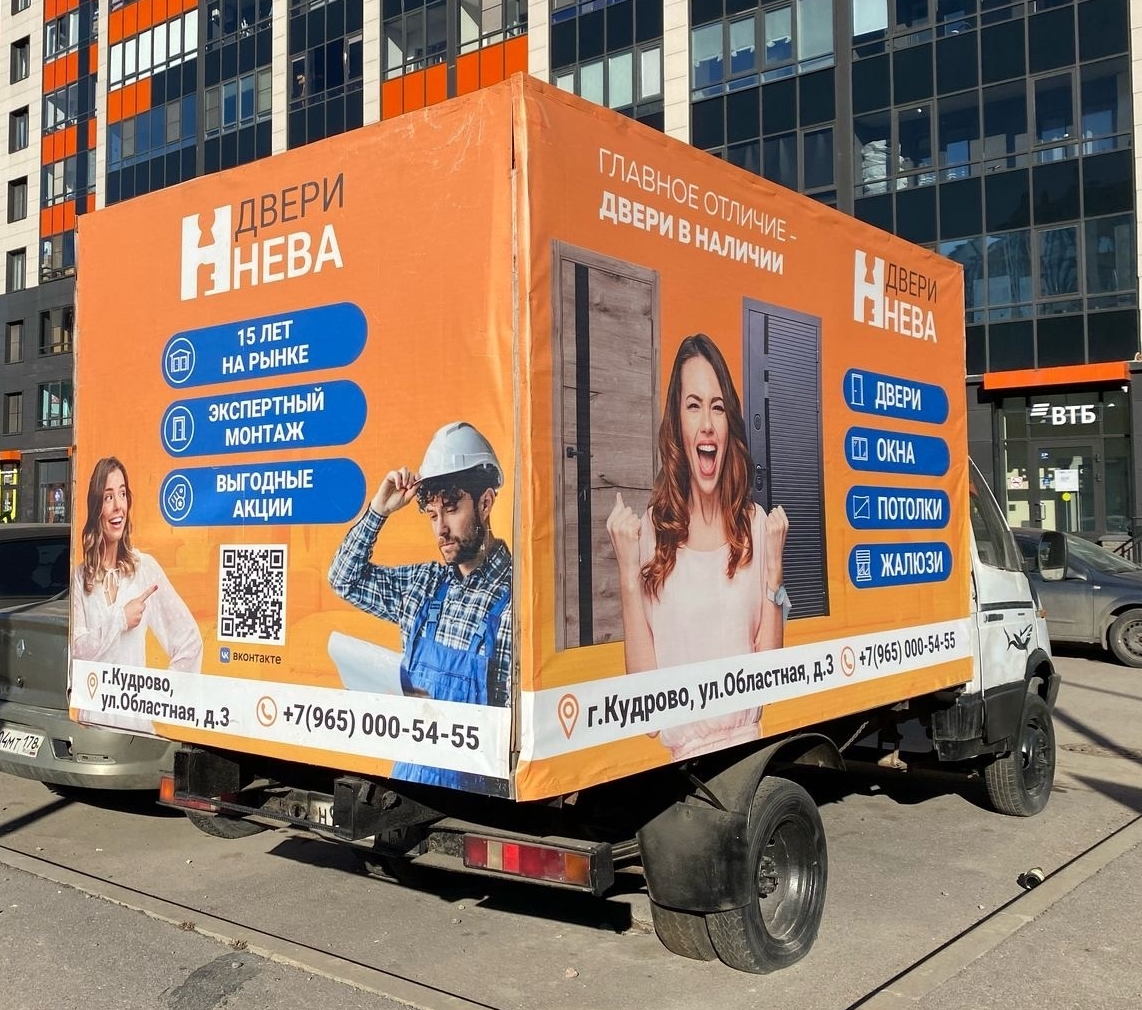 Ровно натягиваем баннеры, благодаря специальному основанию на наших машинах, чтобы ваша реклама выглядела статусно